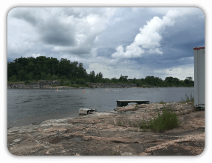 The launch site is the preferred location to launch all CHTTC watercraft. It offers a path to drive a pick-up truck down to the water, a clearing large enough to turn the truck around and a slowly sloping shore which allows for easy deployment of a watercraft. Retrieval is performed here as well of watercraft is performed here as well. It even allows for large watercraft, such as pontoon boats, to be deployed. Deployment of small turbine units can be performed here as well, as long as the turbine unit fits on a trailer.